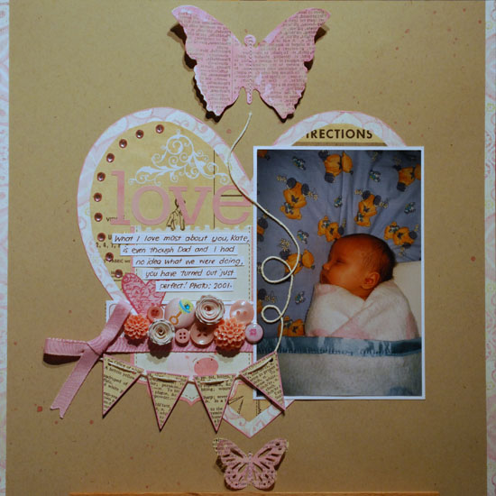 The journaling reads: What I love most about you, Kate, is even though Dad and I had no idea what we were doing, you have turned out just perfect.