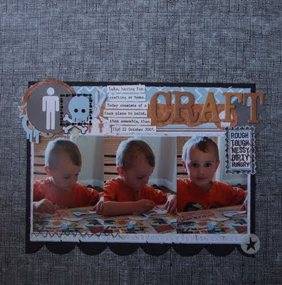 I got to work with Kaisercraft Skull Boi paper and rhinestones. I added some Kaisercraft fozz felt and rubons to my layouts aswell.