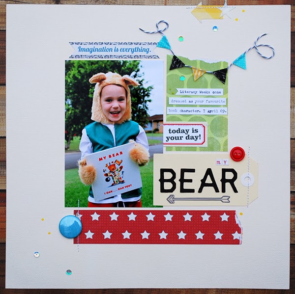 What a cute layout! And what a cute "bear" in the picture! Cool! : )