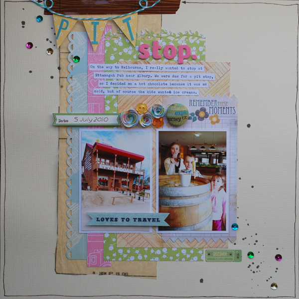 This layout is from when myself and the kids drove to Melbourne for a holiday with my Dad, while Steve went to visit his family in NZ. If there was one place I had to stop, it was the Ettamogah Pub. I remember going there when I was little.