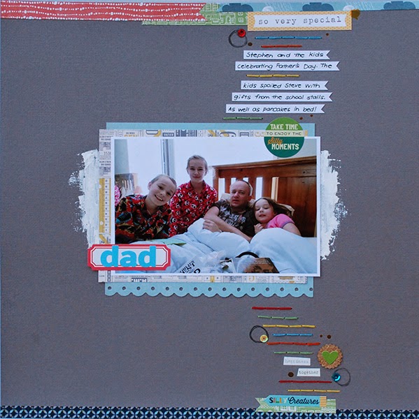 This time it’s a layout featuring a spunky man and some pretty cute kids taken on Father’s Day 2013.